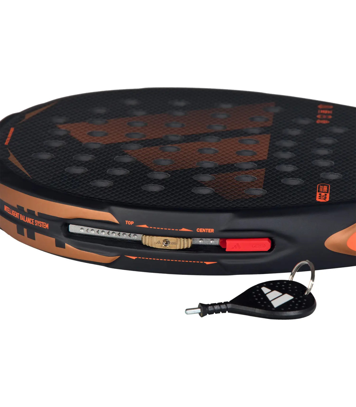 La confianza nace del control con la adidas Arrow Hit CTRL 2026. El Intelligent Balance System te permite ajustar al instante peso y balance, adaptando la pala a tu ritmo y táctica para jugar con precisión en cada punto. Su estructura reforzada, combinando ASC Carbon Fiber, Structural Reinforcement y Muscle Power System, ofrece un toque estable y reactivo, aumentando la resistencia a torsiones y manteniendo cada golpe limpio y definido. El Power Groove refuerza la rigidez estructural y potencia los impactos, mientras que el Extra Power Grip mejora la aceleración en cada golpe. La goma Soft Performance EVA aporta comodidad y salida de bola consistente, y el Spin Blade Decal permite generar efecto con mayor control. Con el formato redondo, el control en golpes defensivos es más ágil, convirtiendo esta pala en la compañera perfecta para jugadores avanzados que buscan precisión, potencia y control del primer al último punto. Este año presentamos una gran novedad, la nueva cuerda de soga ajustable con una muñequera acolchada, que garantiza el máximo confort en la muñeca.