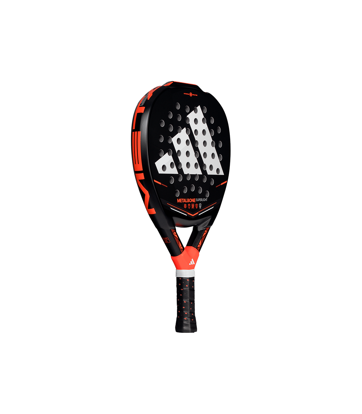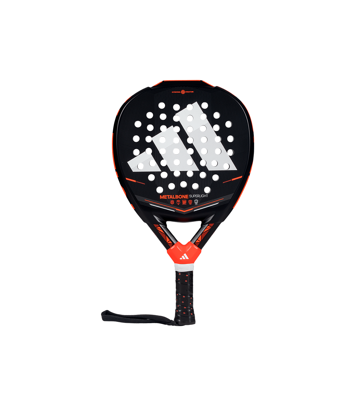 Descubre lo fácil que puede ser el pádel con la adidas Metalbone Superlight 2026. Su estructura ligera, con Octagonal Structure y refuerzos perimetrales, combina rigidez y estabilidad, reduciendo la torsión y haciendo que cada golpe sea más preciso. El formato Diamante Oversize ofrece un mayor balance y una superficie de golpeo amplia, aumentando la potencia en ataques ofensivos y facilitando el control en cada punto. La goma Soft Performance EVA y la fibra de vidrio aportan un tacto cómodo y una salida de bola consistente, mientras que el diseño Smart Holes Curve ayuda a generar más efecto en todos los golpes. Esta pala ligera y equilibrada permite movimientos más rápidos y fluidos, ayudando a los jugadores en formación a mejorar su juego y ganar confianza desde el primer punto. Y este año como una gran novedad incorporamos a nuestras palas una cuerda de soga ajustable para un mejor agarre en la muñeca.