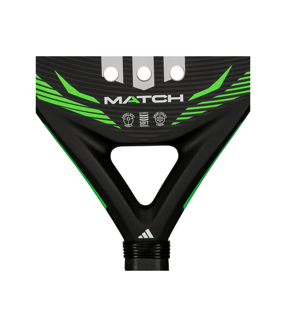 Descubre la emoción del pádel con equilibrio perfecto y confort total. La pala de padel adidas Match black lime 2026 es tu compañera all-in-one para el viaje. Su forma ALLROUND versátil asegura un rendimiento fiable tanto si estás aprendiendo a defender como si estás dando tus primeros golpes en la red. Siente un toque suave increíblemente cómodo y una alta salida de bola gracias a la superficie de Fibra de Vidrio y el núcleo Soft Performance EVA, lo que te permite jugar sin esfuerzo y por más tiempo. El sistema STRUCTURAL REINFORCEMENT integrado asegura que tu pala sea estable y súper duradera, dándote la confianza para centrarte puramente en mejorar tu juego