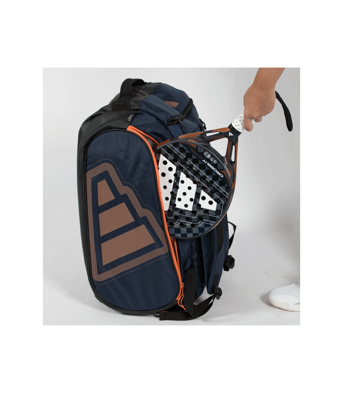 Lleva tu material con seguridad gracias al Paletero adidas Protour Blue 2026. Sus dos compartimentos laterales térmicos mantienen tus palas protegidas, mientras que la apertura principal de doble cremallera facilita guardar y sacar todo con rapidez.