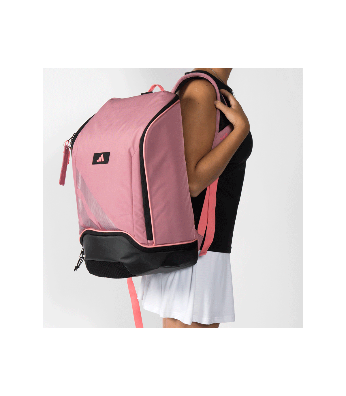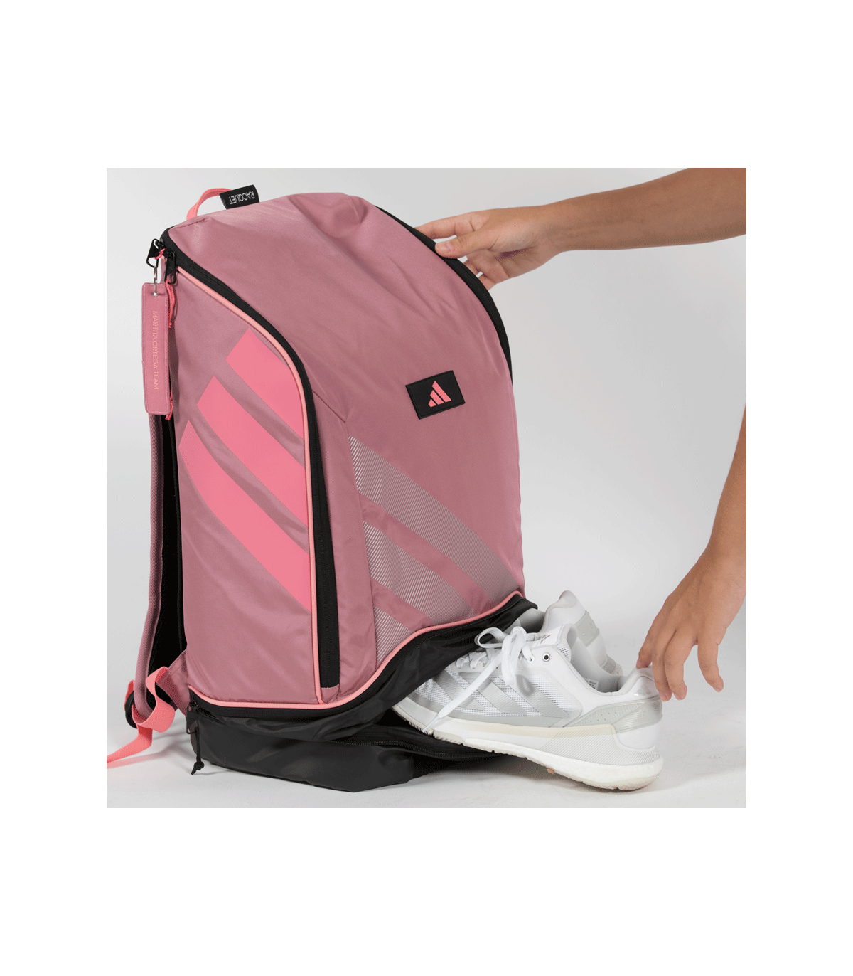 La mochila adidas Protour de Martita Ortega 2026 presenta una nueva apertura principal en forma de U que facilita el acceso, junto con una construcción más limpia y simplificada.